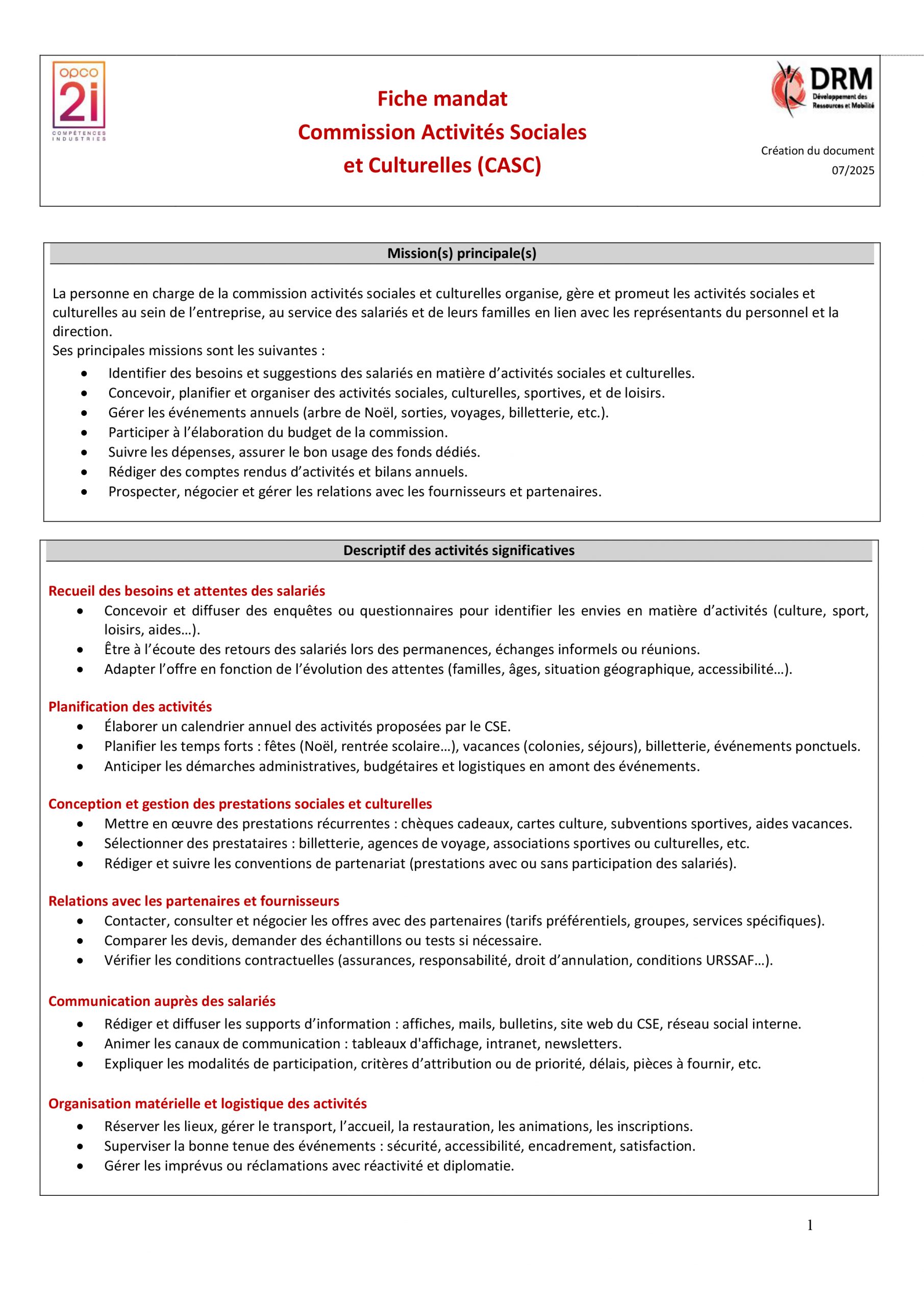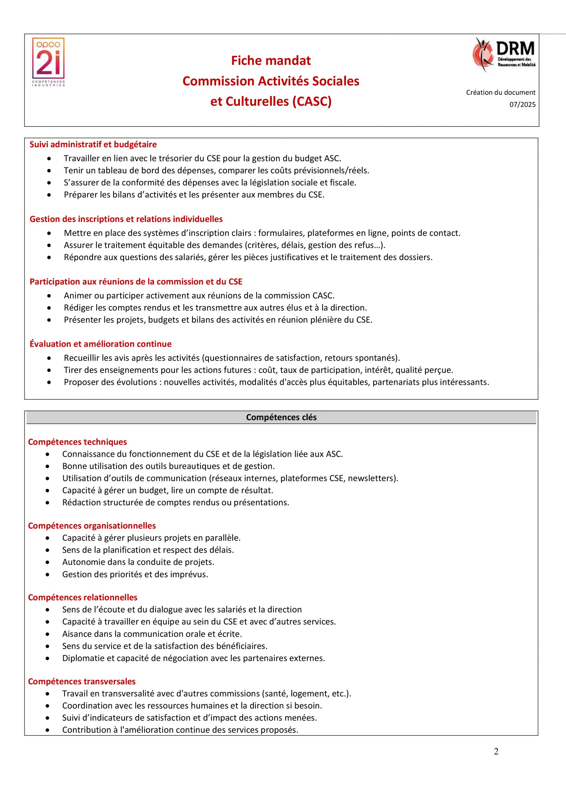 Fiche mandat V2 – Commission activités sociales et Culturelles (CASC)