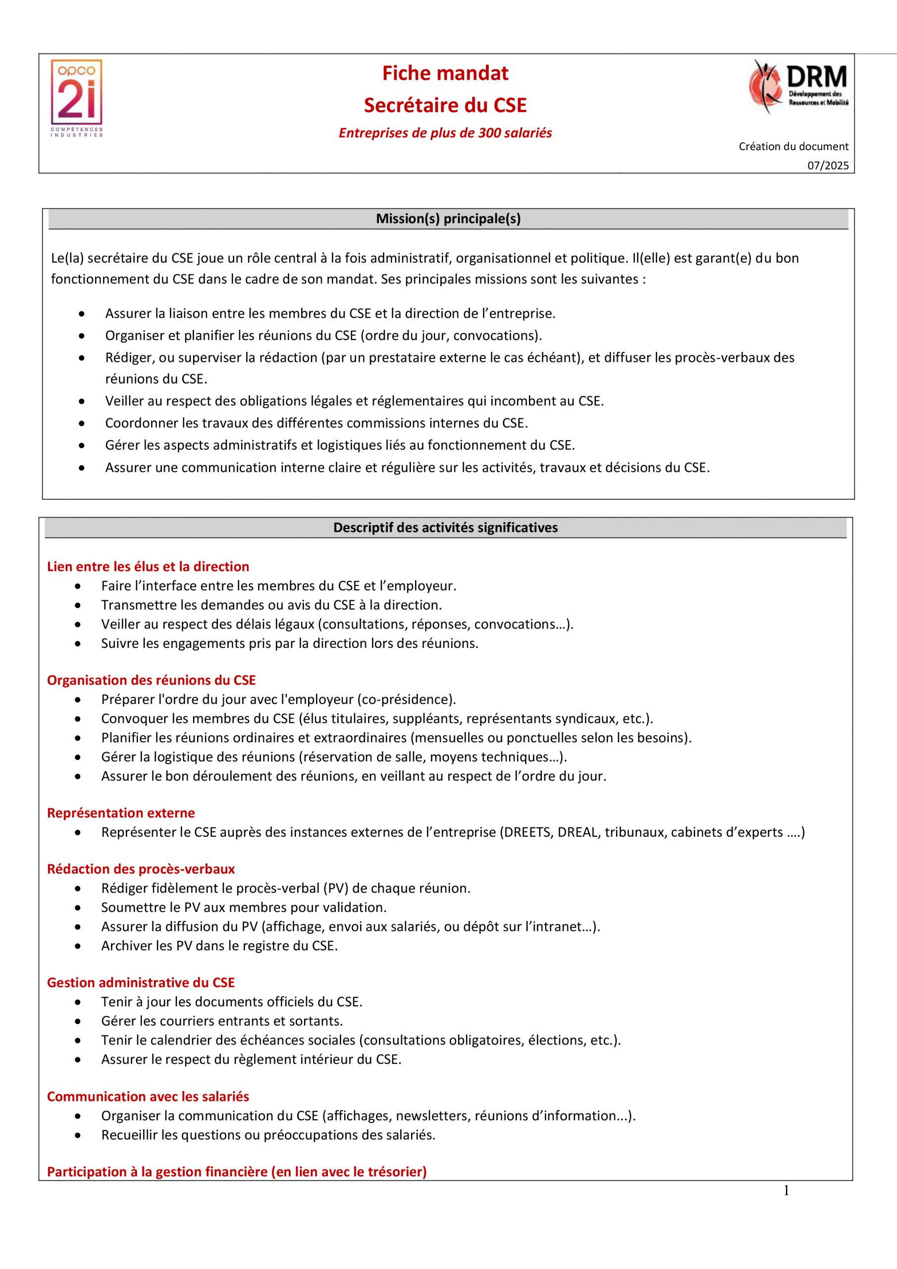 Activités significatives, ajouter : représente le CSE auprès des instances externes de l’entreprise ( DREETS, DREAL, tribunaux, cabinets d’experts … )